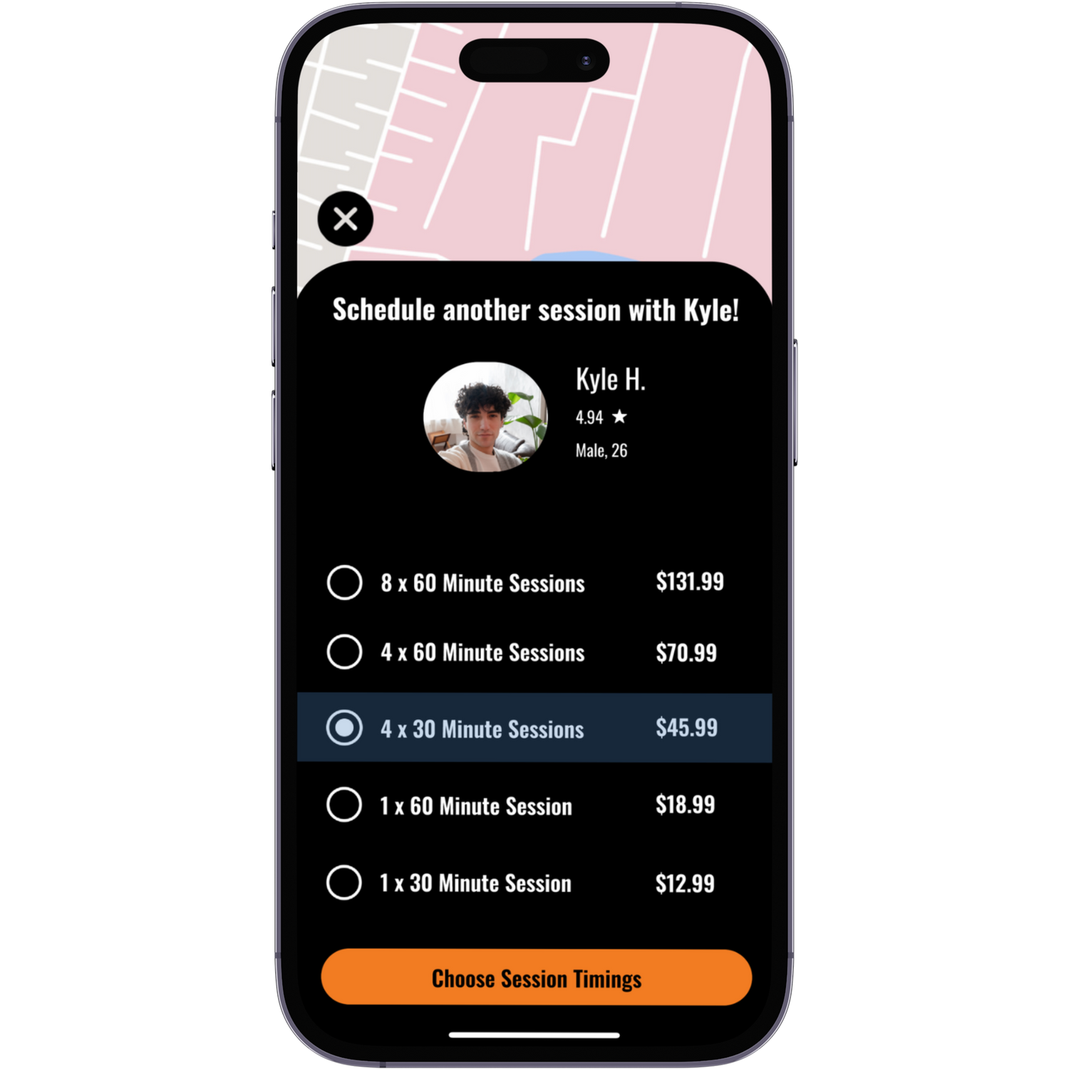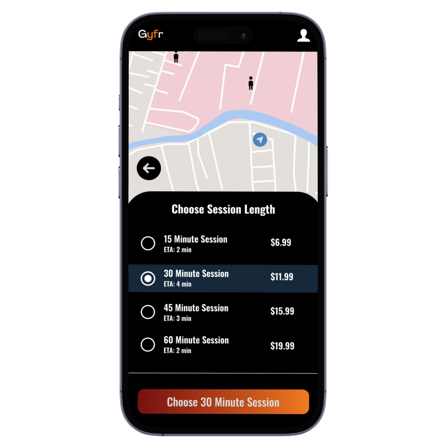 With Gyfr, you don't have to worry about spending hours filling out applications to find a trainer and then go through hassle of matching their schedule. Using Gyfr, you will be matched with a trainer with a single tap, instantly.